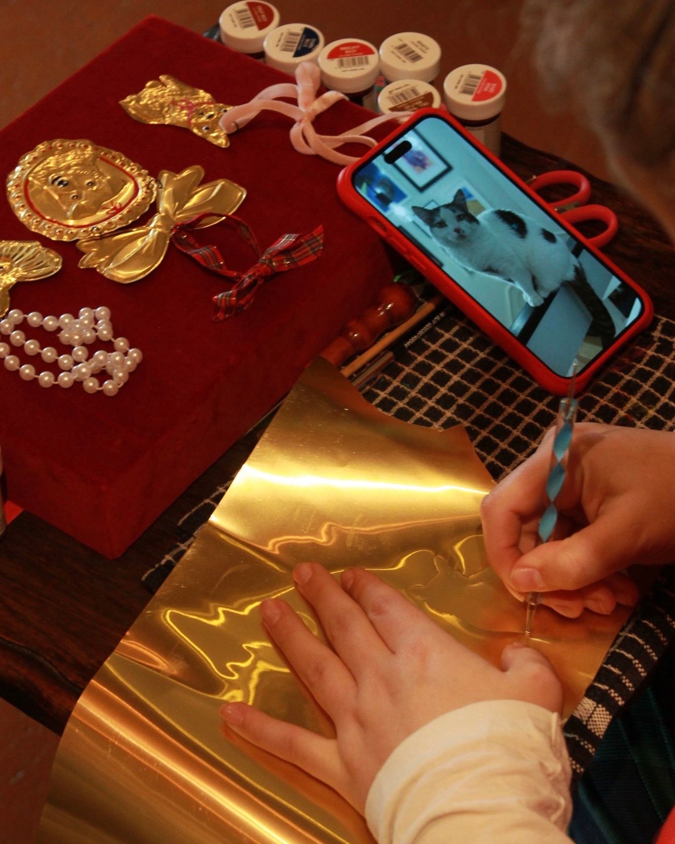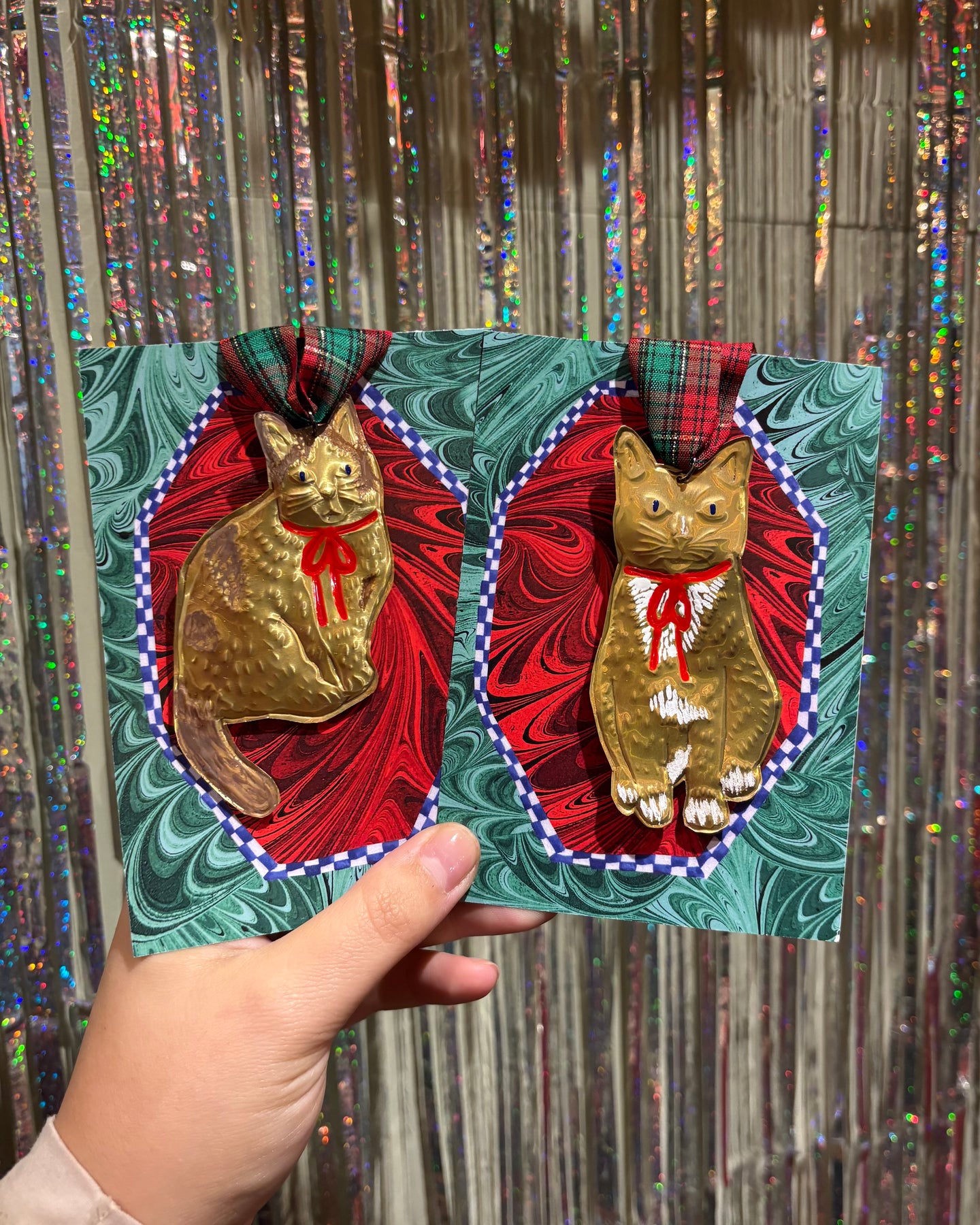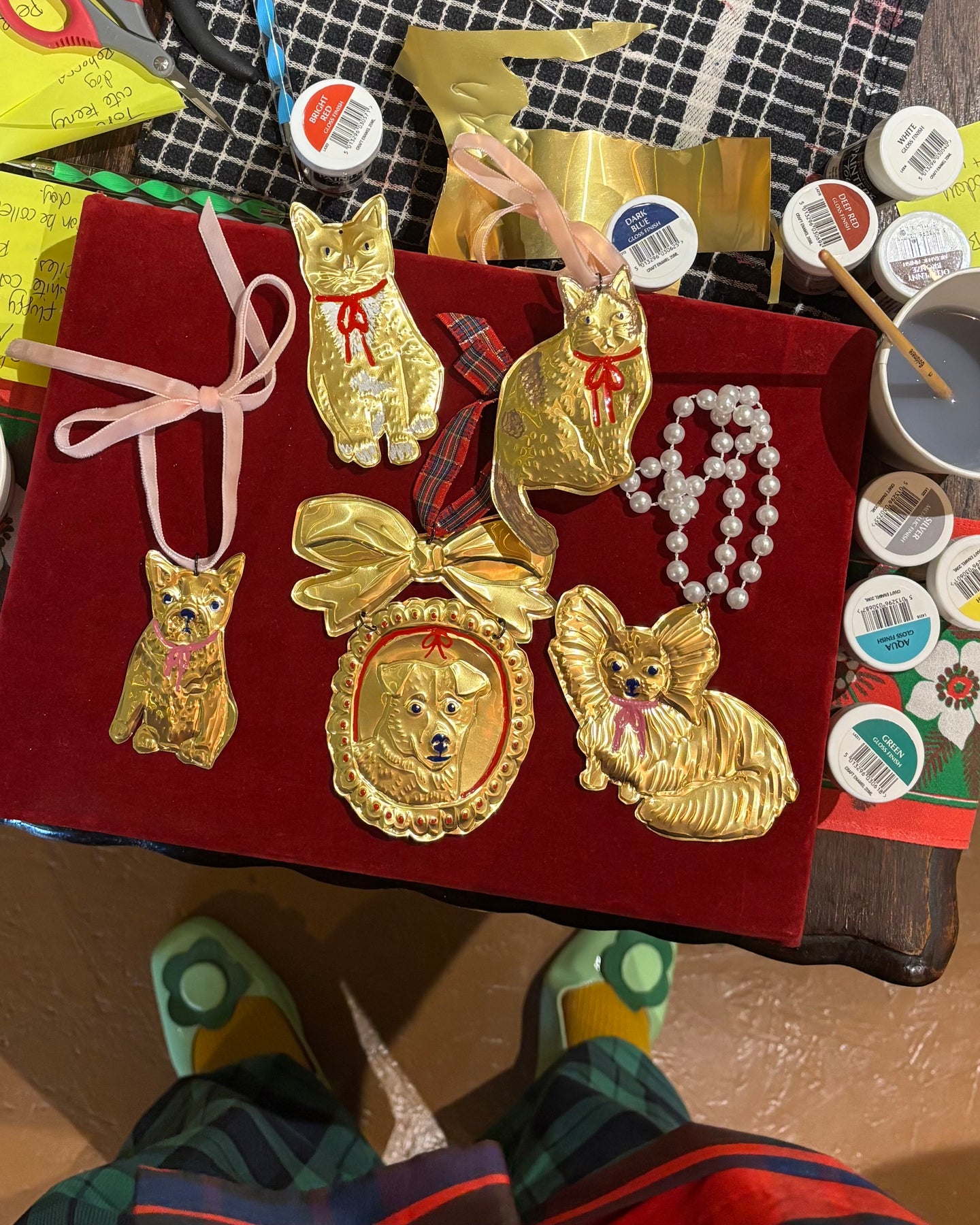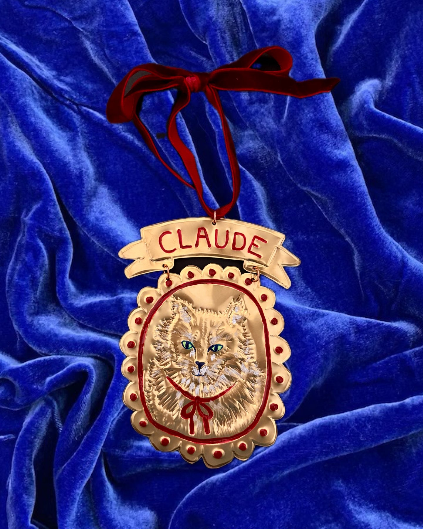 Your animal bestie immortalised as a glorious golden decoration. Capturing your pets character in bespoke embossed brass, finished with a velvet ribbon to hang from. I’m offering slots for decorations that will be made and after January 20th. You can choose from a single full body style or a framed portrait style, with an added detail, this detail could be a bow (as shown) or could be your pet’s name, or their favourite food or toy, anything that makes you think of them.