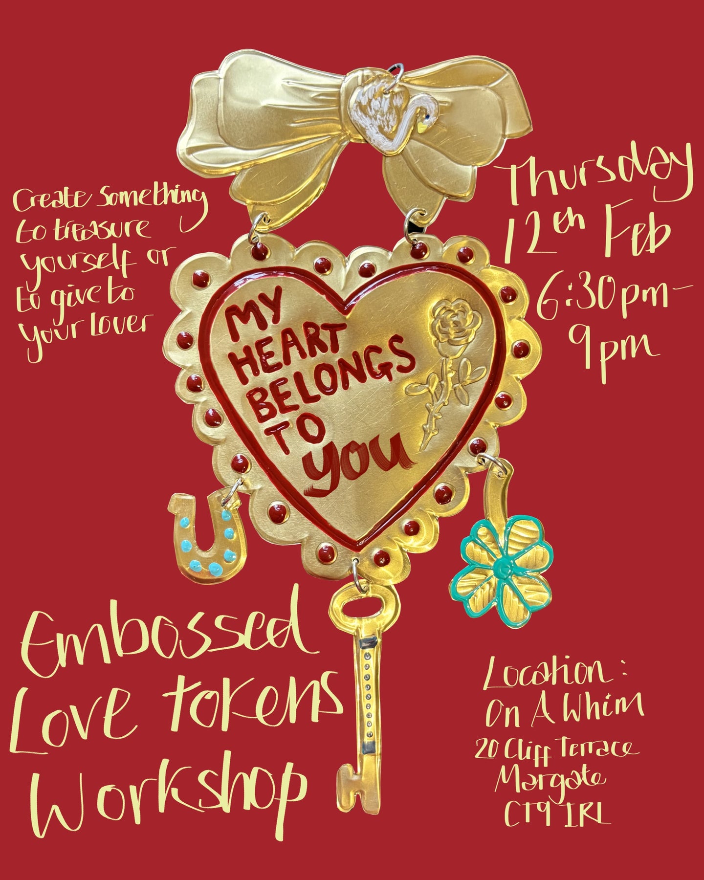 Join me for a creative cosy evening at On A Whim, making something sentimental that you or a loved one can treasure forever. I’ll guide you through designing and making embossed metal love tokens, teaching you my favourite techniques to create a piece special to you.